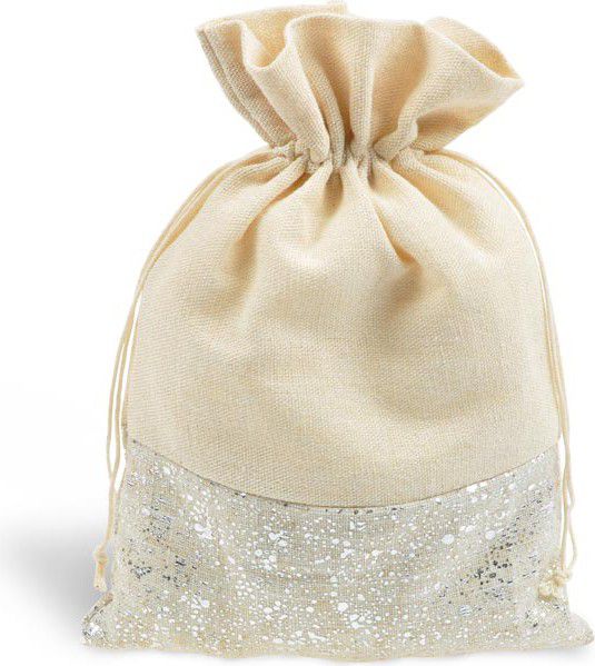 Látkový dárkový pytlík v béžové barvě.