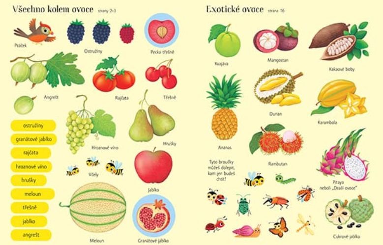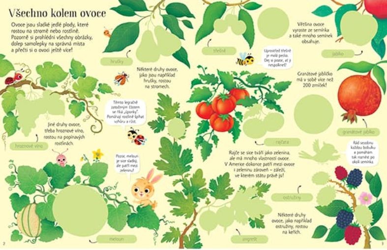 - Krásně ilustrovaná, nelicenční samolepková knížka s ovocem a zeleninou zaujme každé dítě.