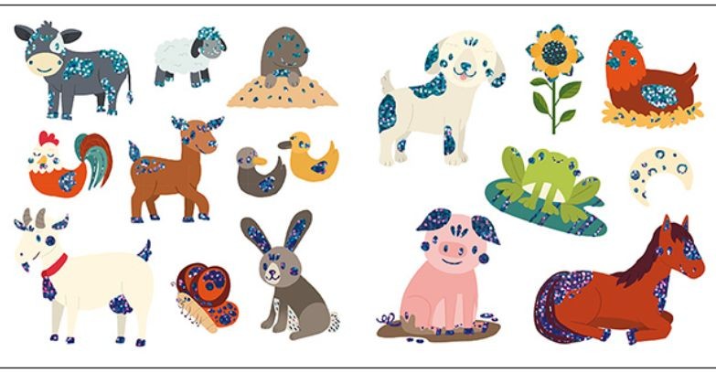 - Samolepková knížka malého formátu obsahuje 16 stran a 4 listy samolepek, z nichž některé mají metalický efekt.