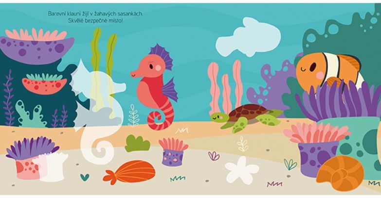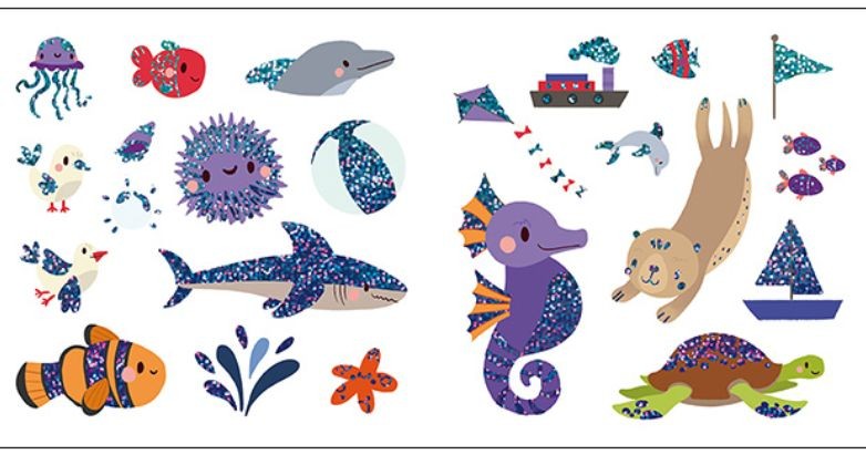 - Samolepková knížka malého formátu obsahuje 16 stran a 4 listy samolepek z mořského světa, z nichž některé mají metalický efekt.