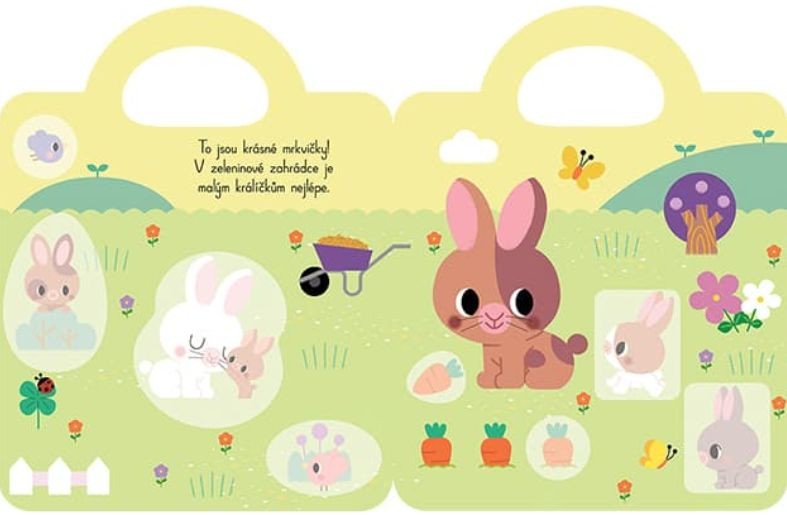 - Samolepková knížka malého formátu obsahuje 12 barevných stran a více než 45 samolepek k dolepení a procvičení jemné motoriky nejmenších dětí.