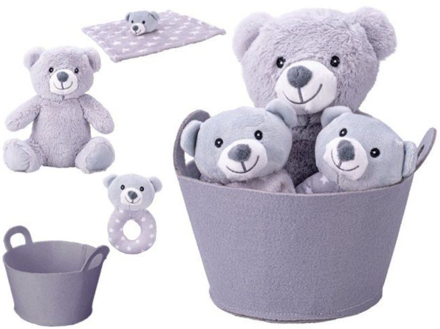 Informace o zboží Set plyšový medvídek, chrastítko a usínáček v košíku