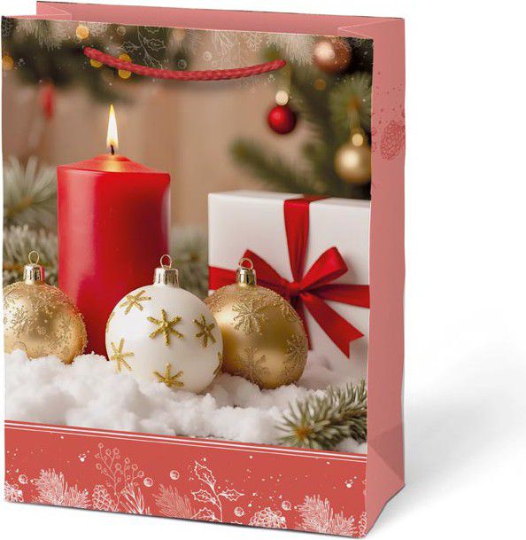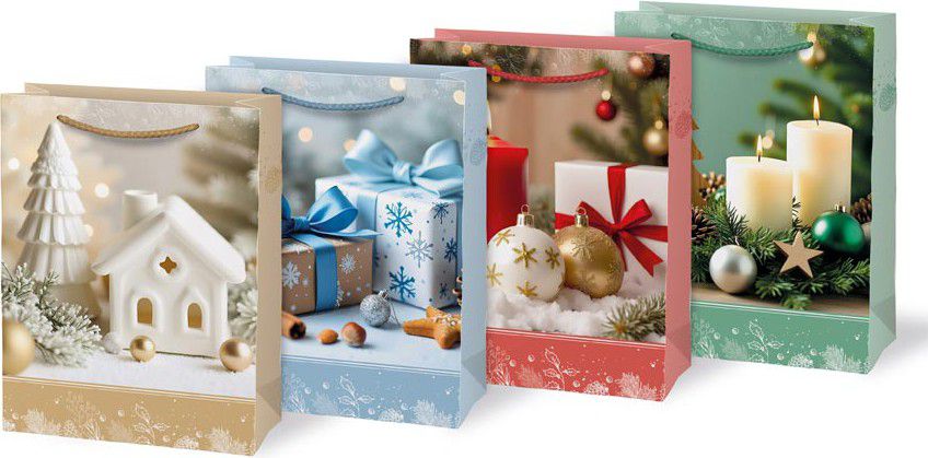 Zapomeňte na stohy balicího papíru a izolepu – s touto vánoční dárkovou papírovou taškou MFP T4 zabalíte dárek během chvilky a přitom opravdu stylově. Motivy svíček, vánočních ozdob, zabalených dárků a zimních dekorací dodají vašemu překvapení ten správný sváteční nádech.