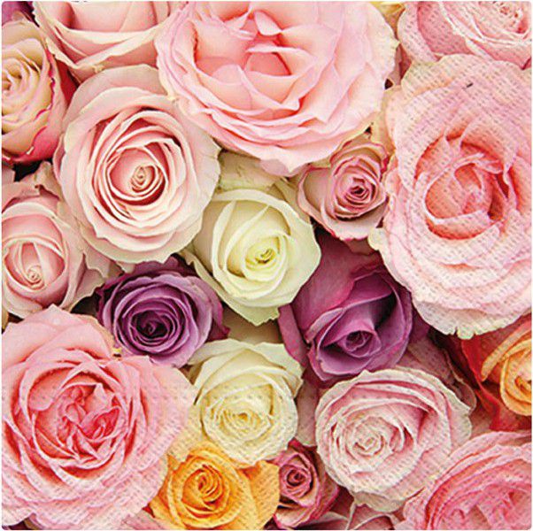 - Krásné kvalitní ubrousky s motivem různobarevných květů růže vykouzlí příjemnou atmosféru.