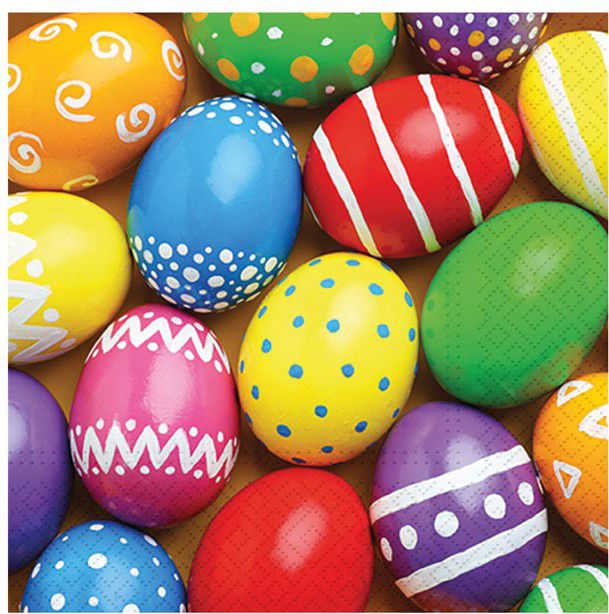- Barevná velikonoční vajíčka s jednoduchými vzory dodávají ubrousku hravý a radostný vzhled, který se k velikonočním svátkům přirozeně hodí.