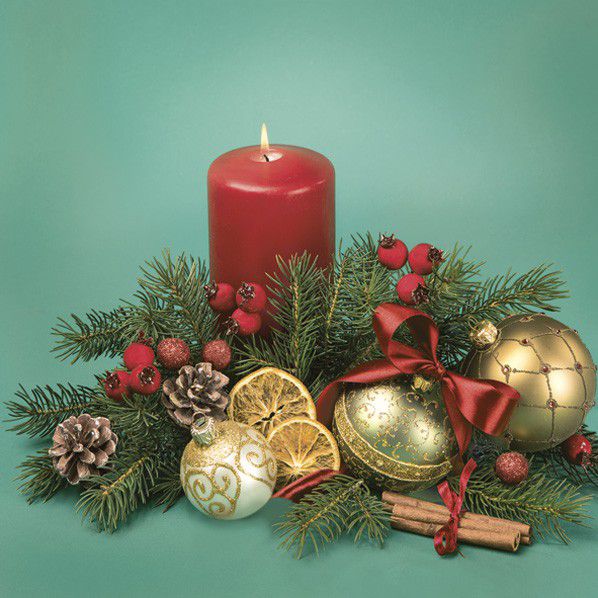 Informace o zboží Ubrousky DAISY L (20ks) Red Candle Composition on Green