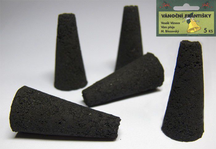 - Co je vlastně františek. Vánoční františek je pálené dřevěné uhlí. Nejčastěji se používá lipové dřevo. Rozemleté dřevěné uhlí a pryskyřice se smíchají s pojivem a přidá se k němu kadidlo (olibanum). Kadidlo je pryskyřice z kadidlovníku pravého (Boswellia sacra), který dodávám františku jeho charakteristickou vůni. Hmota se pak pomocí speciálních kleští vymačkává do tvaru jednotlivých homolek. Homolky se pak suší v sušárně nebo na sluníčku.