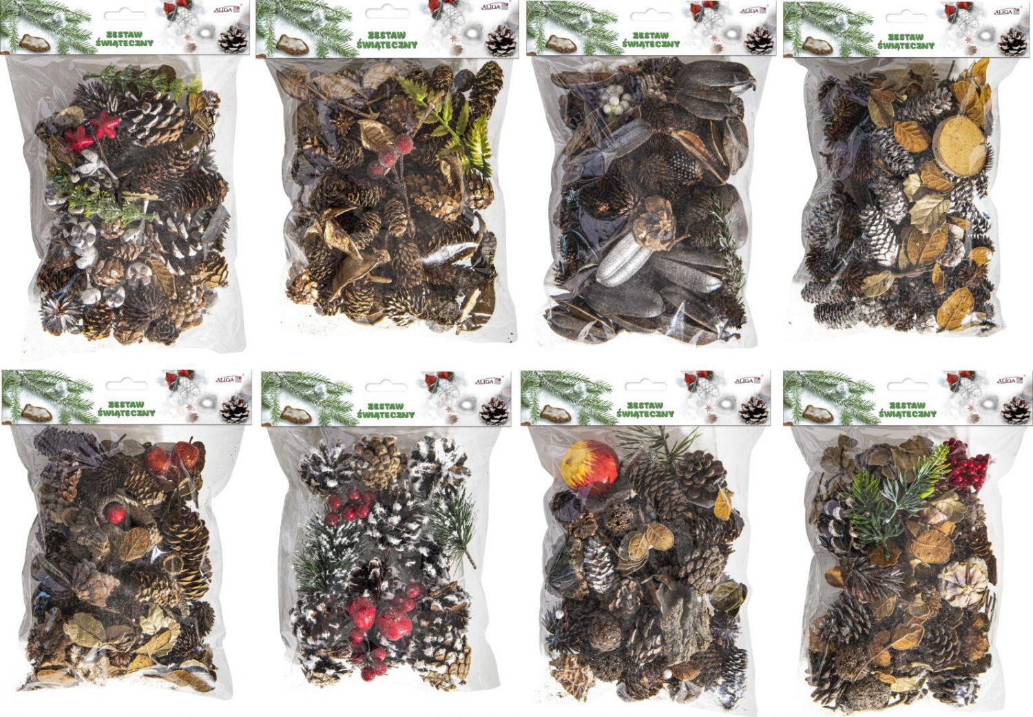 - Obsah: různé druhy přízdob - šišky, bobule a větvičky.