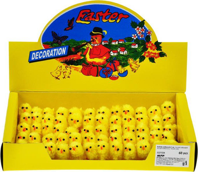 - POUŽITÍ: Velikonoční kuřátka jsou vhodná pro dekorování košíčků, květináčů, věnců a pro aranžování velikonoční výzdoby.