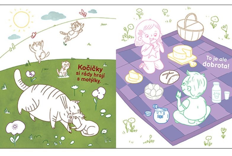 Omalovánky obsahují 24 stran s velkými probarvenými obrázky a více než 50 samolepek k dolepení a ozdobení.