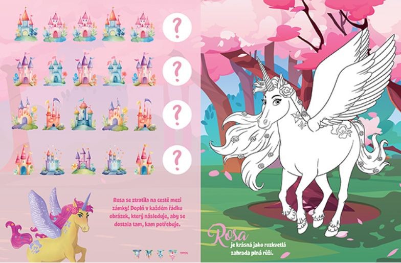 - Omalovánky obsahují 24 stran k vybarvení a list krásných metalických 3D samolepek.