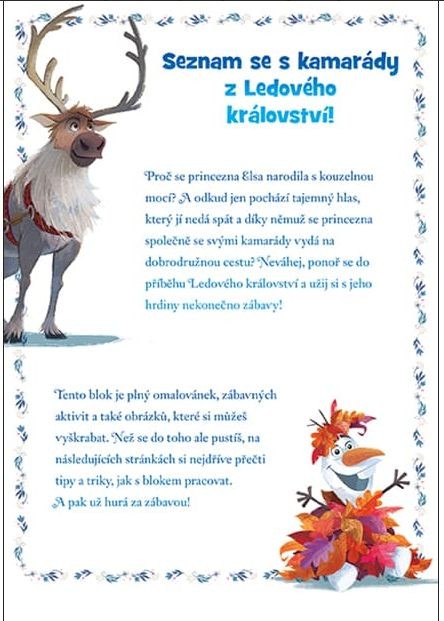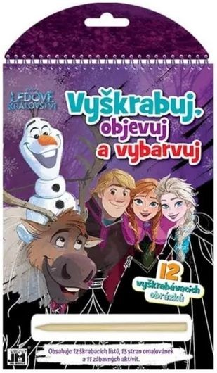 - Titul obsahuje 56 stran plných škrabacích obrázků s hrdiny Ledového království, omalovánek a zajímavých informací a dřevěné rydlo k vyškrabávání.