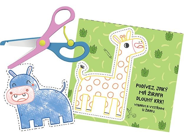 - Vystřihovánky obsahují 24 stran aktivit pro rozvoj stříhání a dětské nůžky s kulatou špičkou.