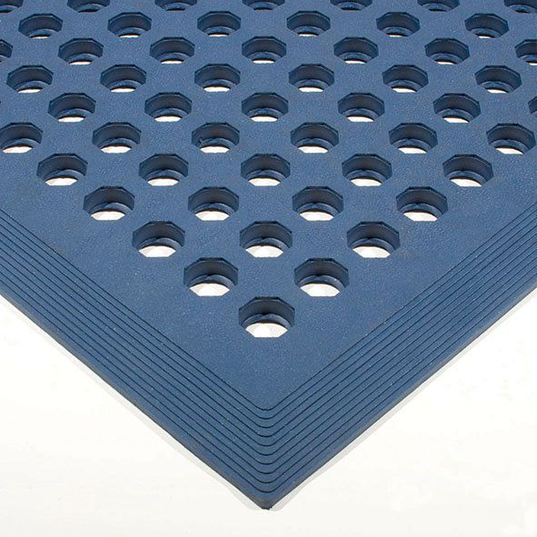Robustní odolná protiúnavová rohož s lisovanými náběhovými hranami vyrobená z přírodní / nitrilové gumy. Jedinečný design rubové strany drží rohož pevně na místě.