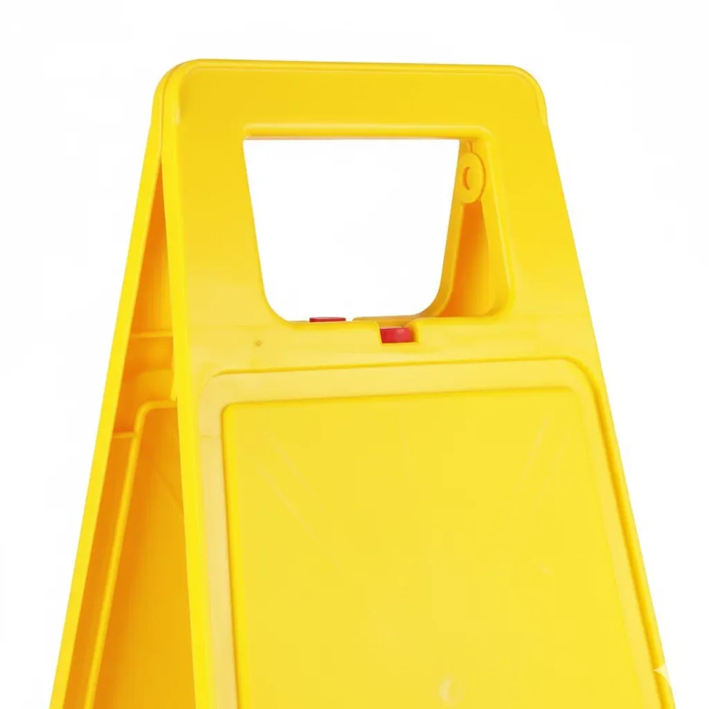 Robustní konstrukce z velmi odolného plastu (PVC) zajišťuje dlouhou životnost, stabilitu a snadnou manipulaci. Praktická západka zabraňuje nechtěnému složení stojanu během používání. Výrazná žlutá barva spolu s piktogramy a textem přitahuje pozornost a významně přispívá ke zvýšení bezpečnosti na pracovištích, v obchodních centrech, na letištích či v dalších veřejných prostorách.