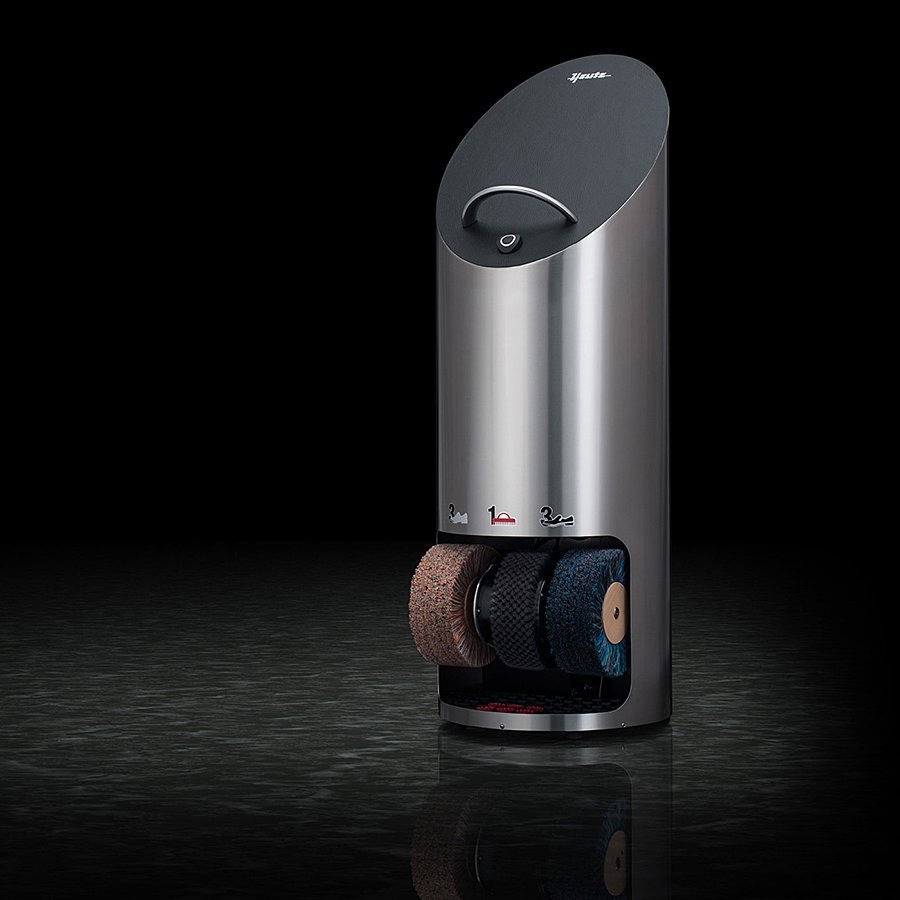 Stříbrný nerezový čistič bot s koženým povrchem Heute Ellipse