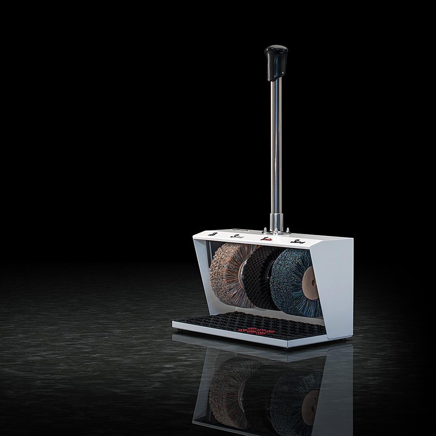 Bílý čistič obuvi Polifix 2 je určen především pro hotely, penziony a obchodní centra. Jedná se o čistič robustní ocelové konstrukce se třemi kartáči. Mohutná a stabilní základna je doplněna madlem, na jehož konci je ruční spínač pro zapnutí a vypnutí čističe.