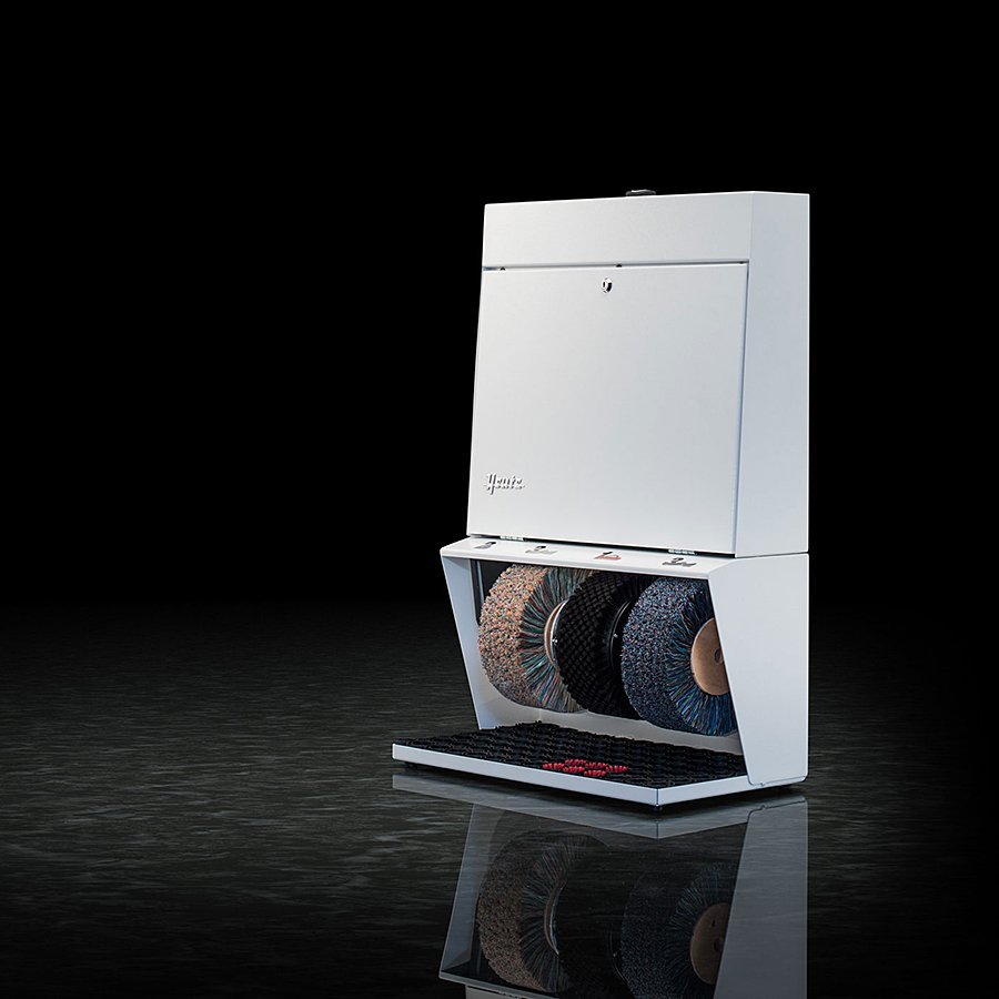 Bílý čistič obuvi Polifix 3 je určen především pro hotely, penziony a obchodní centra. Jedná se o čistič robustní ocelové konstrukce se třemi kartáči a nádržkou na polituru. Štíhlá konstrukce společně se zajímavými barevnými kombinacemi dává tomuto čističi obuvi neotřelý vzhled, který jej předurčuje všude tam, kde hledáte nenápadný, ale zajímavý vzhled spojený s vysokou účinností čističe na boty. Čistič na boty Polifix 3 je vybaven ručním senzorem s časovačem umístněným na vrchní části čističe.