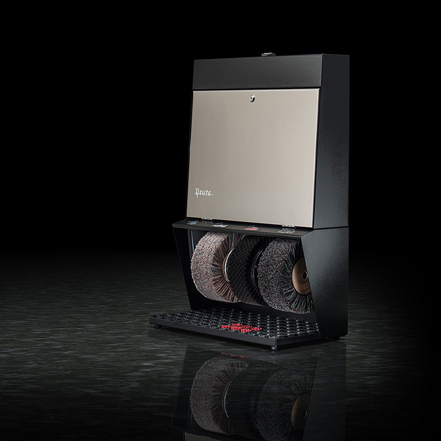 Černo-stříbrný (mosazný) čistič obuvi Polifix 3 je určen především pro hotely, penziony a obchodní centra. Jedná se o čistič robustní ocelové konstrukce se třemi kartáči a nádržkou na polituru. Štíhlá konstrukce společně se zajímavými barevnými kombinacemi dává tomuto čističi obuvi neotřelý vzhled, který jej předurčuje všude tam, kde hledáte nenápadný, ale zajímavý vzhled spojený s vysokou účinností čističe na boty. Čistič na boty Polifix 3 je vybaven ručním senzorem s časovačem umístněným na vrchní části čističe.