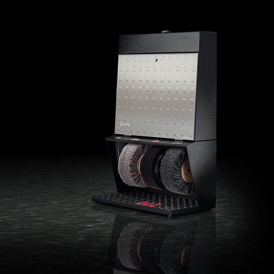 Černo-stříbrný (tlačená ocel) čistič obuvi Polifix 3 je určen především pro hotely, penziony a obchodní centra. Jedná se o čistič robustní ocelové konstrukce se třemi kartáči a nádržkou na polituru. Štíhlá konstrukce společně se zajímavými barevnými kombinacemi dává tomuto čističi obuvi neotřelý vzhled, který jej předurčuje všude tam, kde hledáte nenápadný, ale zajímavý vzhled spojený s vysokou účinností čističe na boty. Čistič na boty Polifix 3 je vybaven ručním senzorem s časovačem umístněným na vrchní části čističe.