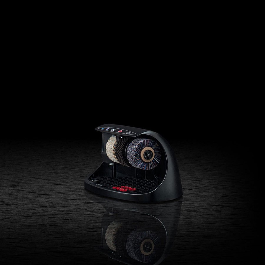 Čistič obuvi Cosmo má jeden čistící, dva leštící kartáče a nádržku na polituru. Jedná se elegantní a kompaktní čistič bot, jehož tělo je vyrobeno z hliníku a je dodáván v několika barevných variantách. Okartáčovaná nečistota padá do vyjímatelné gumové rohože, která je osazena kartáčky na čištění podrážek bot.