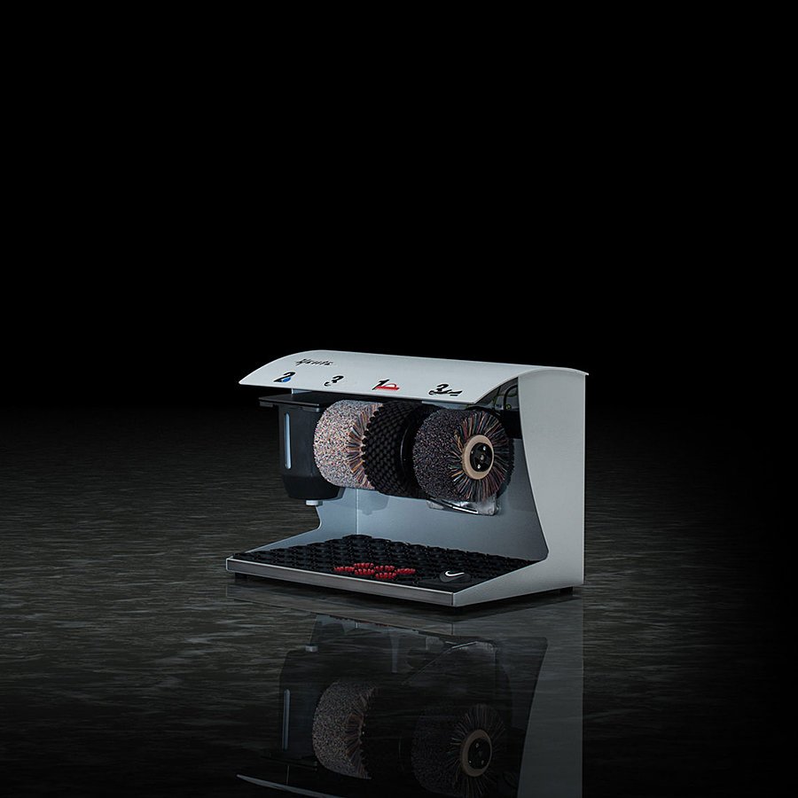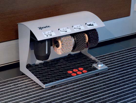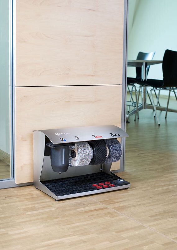 Čistič obuvi Elegance Color má jeden čistící, dva leštící kartáče a nádržku na polituru. Jedná se kompaktní a elegantní čistič bot, který je dodáván v několika barevných kombinacích. Okartáčovaná nečistota padá do vyjímatelné gumové rohože, která je osazena kartáčky na čištění podrážek bot.
