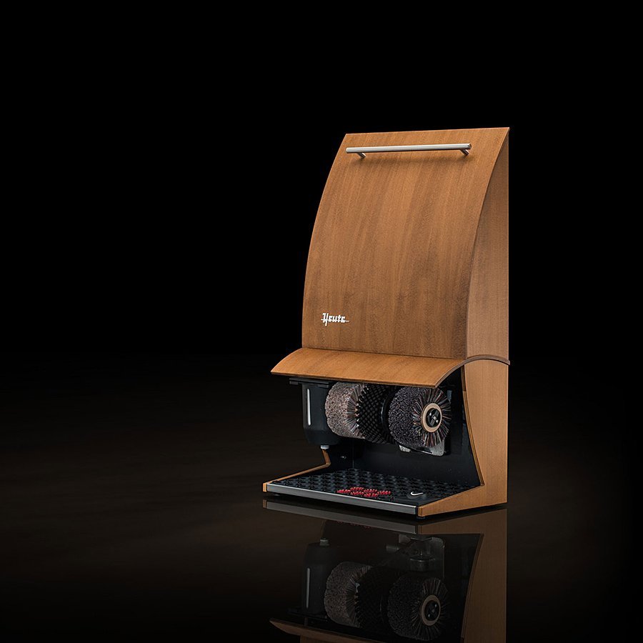 Dřevěný (světlý ořech) čistič obuvi Elegance Nature plus je elegantní čistič obuvi, který je vyroben ze skutečného dřeva. Toto elegantní řešení se uplatní především do menších hotelů, penzionů, bank, restaurací, barů, obchodů, heren a kanceláří, ve kterých jdou elagance a přírodní materiály ruku v ruce. Jedná se o čistič se třemi kartáči a nádržkou na polituru. Čistič na boty Elegance Nature plus je vybaven nožním senzorem s časovačem.