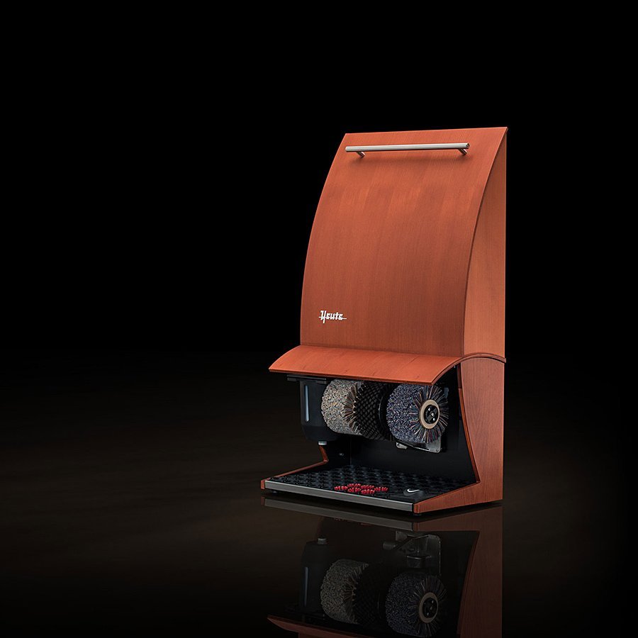 Dřevěný (třešeň) čistič obuvi Elegance Nature plus je elegantní čistič obuvi, který je vyroben ze skutečného dřeva. Toto elegantní řešení se uplatní především do menších hotelů, penzionů, bank, restaurací, barů, obchodů, heren a kanceláří, ve kterých jdou elagance a přírodní materiály ruku v ruce. Jedná se o čistič se třemi kartáči a nádržkou na polituru. Čistič na boty Elegance Nature plus je vybaven nožním senzorem s časovačem.