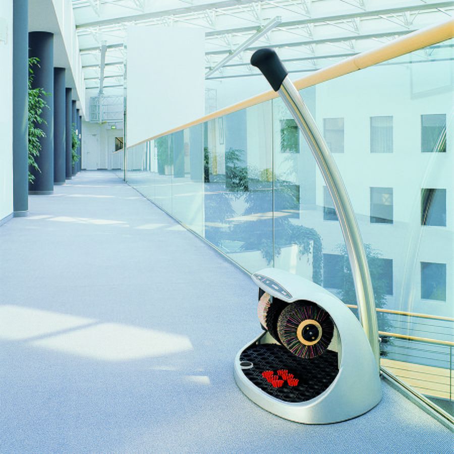 Stříbrný čistič obuvi Cosmo plus je elegantní a kompaktní čistič obuvi, který najde uplatnění především v menších hotelích, penzionech a v místech, kde není tak rušný pohyb osob, jako ve velkých komplexech a budovách. Jedná se o kompaktní čistič se třemi kartáči a nádržkou na polituru. Čistič na boty Cosmo plus je vybaven ergonomickou rukojetí v jejímž zakončení je integrován ruční spínač s časovačem.