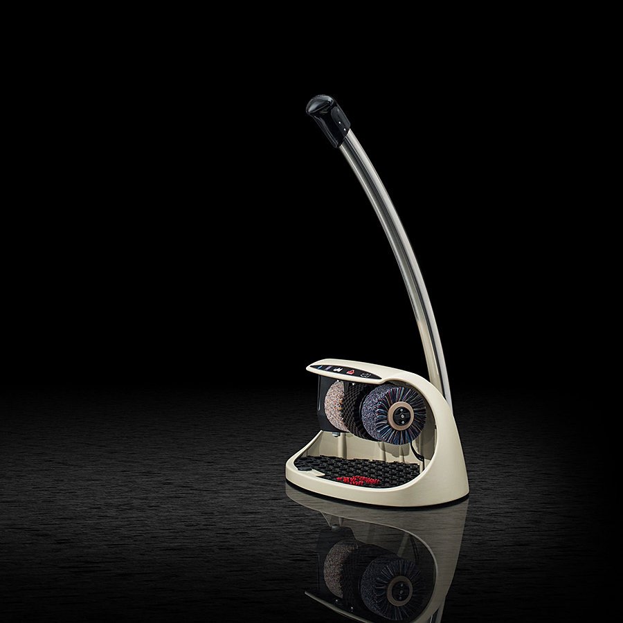 Béžový (slonovinová kost) čistič obuvi Cosmo plus je elegantní a kompaktní čistič obuvi, který najde uplatnění především v menších hotelích, penzionech a v místech, kde není tak rušný pohyb osob, jako ve velkých komplexech a budovách. Jedná se o kompaktní čistič se třemi kartáči a nádržkou na polituru. Čistič na boty Cosmo plus je vybaven ergonomickou rukojetí v jejímž zakončení je integrován ruční spínač s časovačem.