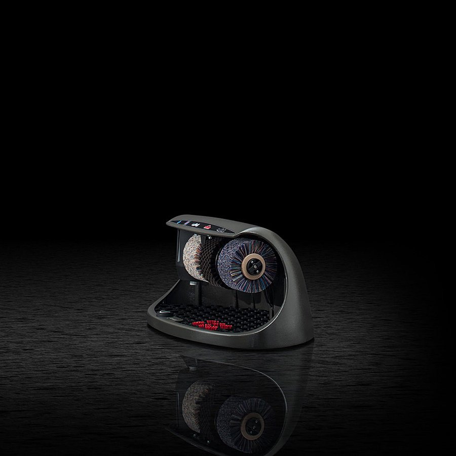 Čistič obuvi Cosmo má jeden čistící, dva leštící kartáče a nádržku na polituru. Jedná se elegantní a kompaktní čistič bot, jehož tělo je vyrobeno z hliníku a je dodáván v několika barevných variantách. Okartáčovaná nečistota padá do vyjímatelné gumové rohože, která je osazena kartáčky na čištění podrážek bot.