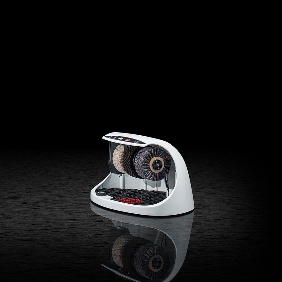 Čistič obuvi Cosmo má jeden čistící, dva leštící kartáče a nádržku na polituru. Jedná se elegantní a kompaktní čistič bot, jehož tělo je vyrobeno z hliníku a je dodáván v několika barevných variantách. Okartáčovaná nečistota padá do vyjímatelné gumové rohože, která je osazena kartáčky na čištění podrážek bot.