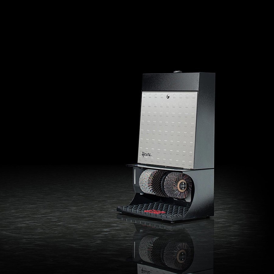 Stříbrný (tlačená ocel) čistič obuvi Ronda 30 nabízí neotřelý design, díky kterému se skvěle hodí do menších hotelů, penzionů a kancelářských prostor. Jedná se o výkonný čistič menších rozměrů se třemi kartáči a nádržkou na polituru. Čistič na boty Ronda 30 je vybaven ručním senzorem s časovačem umístěným na horním víku čističe.