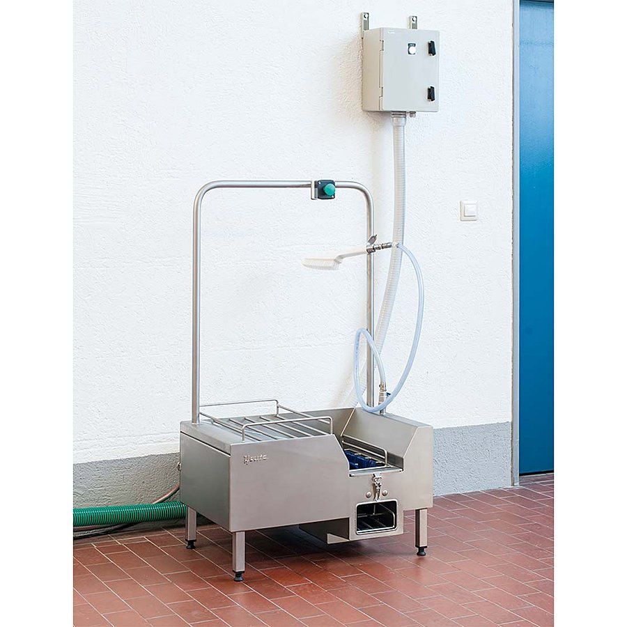 Pro očištění vysokých bot, nebo holínek využijete integrovaný ruční kartáč, který je vybaven regulovatelným přívodem vody. Pro ještě lepší a efektivnější očistu lze přidat dezinfekční prostředky. Nádoba na saponát je umístěna na snadno dostupném místě a hadici pro přívod lze individuálně nastavit pro optimalizaci množství čistícího prostředku.