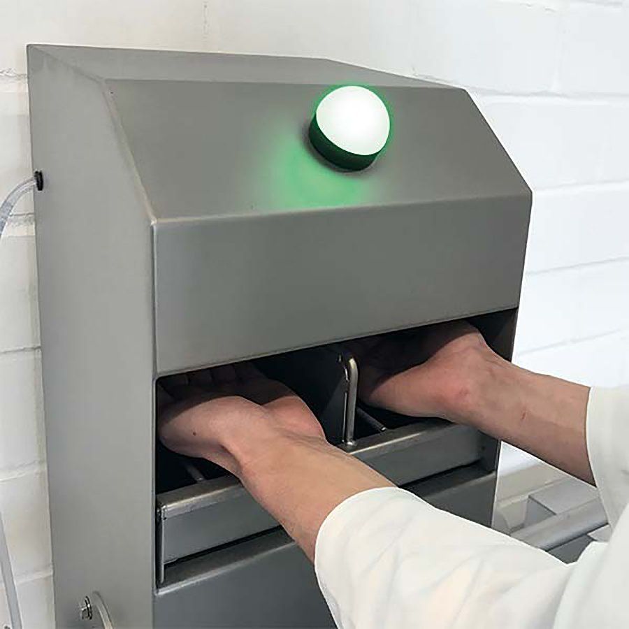 Čistič podrážek Neptun HCS1 je vybaven světelným čidlem pro automatické zapnutí, přičemž délka čištění se nastavuje individuálně dle potřeby. Pro opuštění čističe je potřeba uvolnit turniket, který se automaticky odemkne po použití čističe rukou.