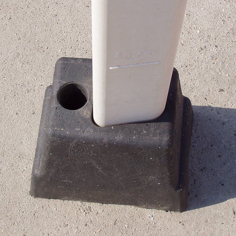 Plastový podstavec pod směrový sloupek slouží k upevnění směrových sloupků, patníků a jiného dopravního značení. Díky dvěma různým otvorům ho lze použít nejen pro upevnění plastových směrových sloupků podél silnic, ale díky druhému kulatému otvoru najde uplatnění při ustavování směrových tabulí nebo jiných signalizačních zařízení a informačních tabulí k různým akcím.