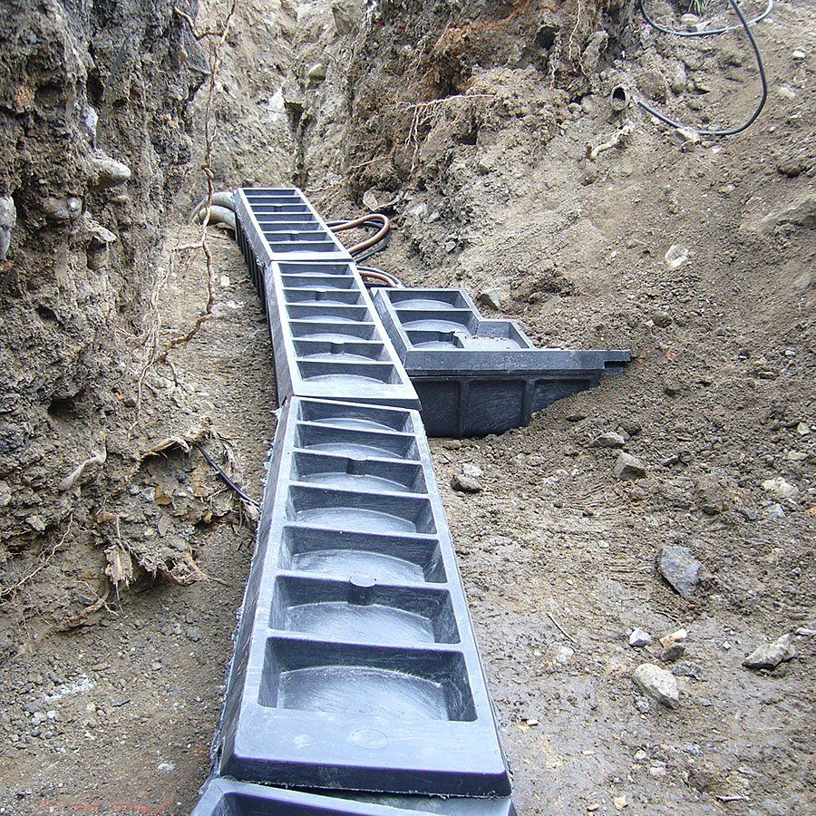 Černá plastová kabelová chránička je určená k ochraně zemních vysokonapěťových elektrických kabelů, sdělovacích a telekomunikačních kabelů, hadic a trubek. Kabelové chráničky jsou vyrobeny z recyklovaného plastu. Jedná se o vysoce vysoce odolný a stálý materiál předurčený pro uložení do země.