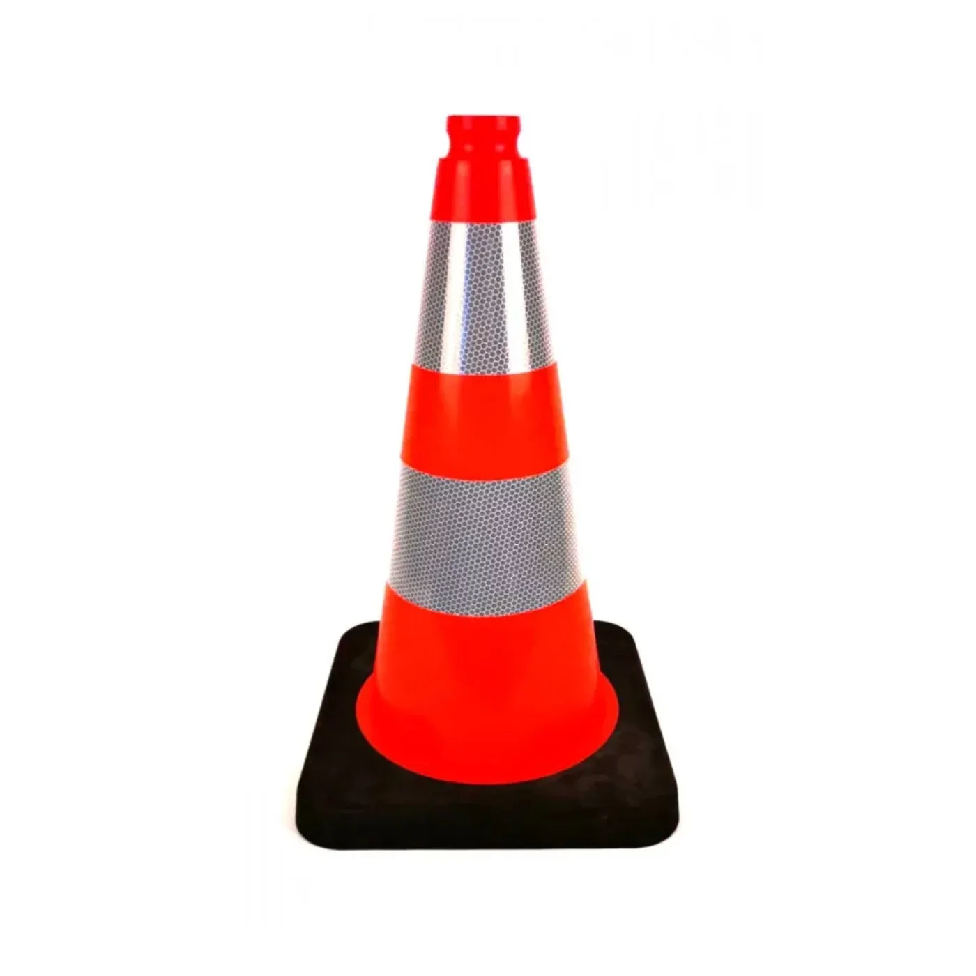 Plastový dopravní kužel je vyroben z vysoce elastického PVC, základna je vyrobena z těžké gumy. Tyto materiály zaručují vysokou odolnost a velice dobrou stabilitu. Stabilita kužele je nesrovnatělně větší než u běžných kuželů, které odfoukne i mírný vítr. Je dodáván ve výrazné oranžové barvě s reflexními pruhy tř. 2. Kužely vyrobené z PVC mají mnohonásobně vyšší životnost než PE kužely, nepraskají a jsou prakticky nezničitelné.
