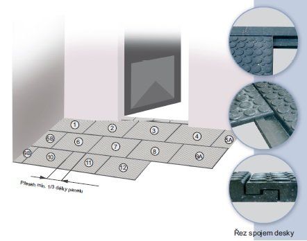 Podlahová deska nabízí vysokou protiskluznost desek, chemickou stálost, nesnadnou hořlavost, snadnou údržbu a rychlou montáž a demontáž. Mimo jiné funguje také jako výborná tepelná izolace.