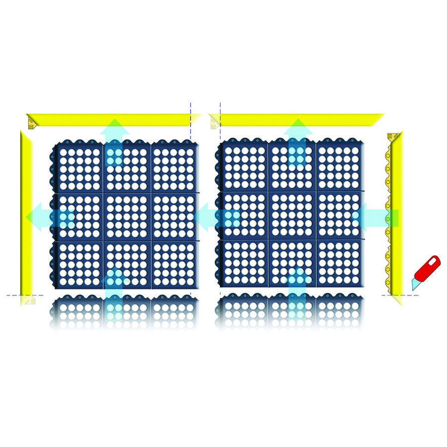 Zámky rohoží umožňují napojení rohoží v podélném i příčném směru. Přímo na místě z nich lze vytvářet ostrůvkové konfigurace nebo celoplošně pokrýt i složitě členitá pracoviště. Na výborných protiúnavových vlastnostech se podílí jak konstrukce rohože, tak i kvalita použitých surovin.