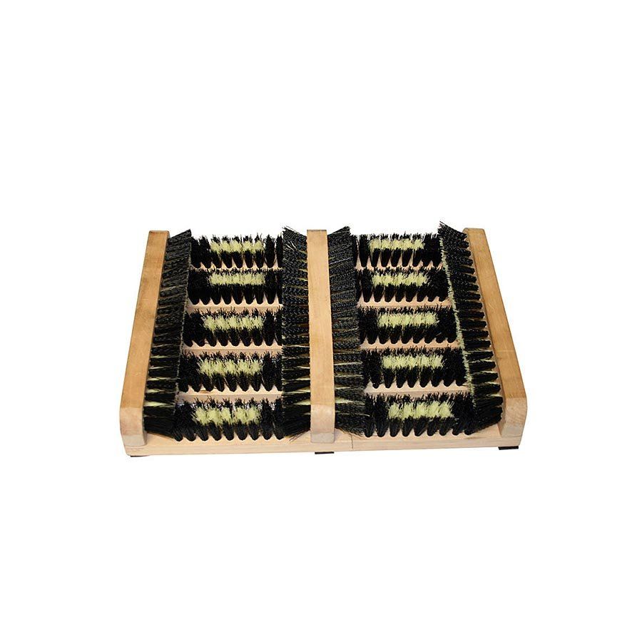 Dřevěný kartáčový čistič podrážek obuvi je praktickým pomocníkem pro udržení čistoty ve vnitřních i venkovních prostorech. Efektivně odstraňuje nečistoty, jako je bahno, sníh, prach nebo písek, čímž zamezuje jejich roznášení do interiéru. Díky několika pevně uchyceným kartáčům, které jsou strategicky rozmístěny, dokáže důkladně očistit nejen spodní část podrážek, ale i jejich boky. Čistič je vybaven gumovou protiskluzovou podložkou, která zabraňuje jeho pohybu po podlaze, což přispívá k pohodlnému a bezpečnému používání. Díky kvalitní dřevěné konstrukci a odolným kartáčům je zajištěna dlouhá životnost i při častém používání.
