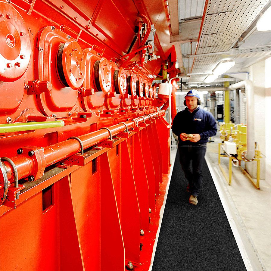 Černá průmyslová protiskluzová rohož Grit Trax je oleji odolná, vinylová rohož pokrytá vrstvou minerálního brusiva slouží k prevenci uklouznutí v extrémně kluzkém prostředí.
