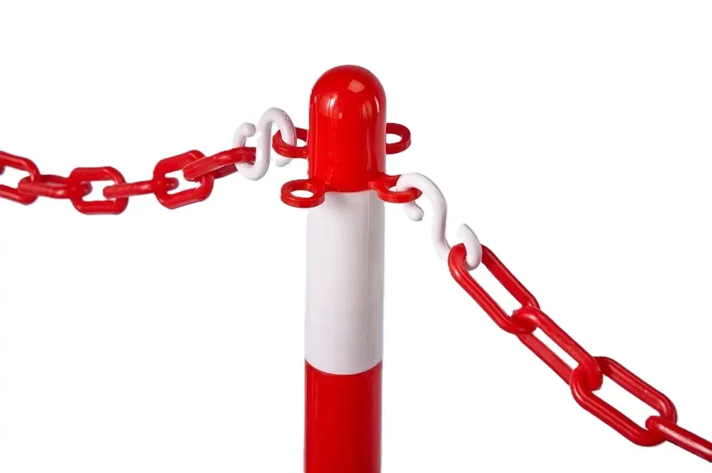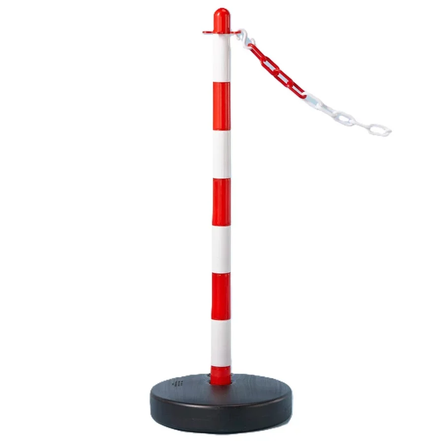 Bílo-červený plastový sloupek s možností uchycení plastových řetězů slouží k rychlému a efektivnímu vymezení nebo uzavření vnitřních i venkovních prostor. Díky nízké hmotnosti je snadno přemístitelný, ale po naplnění podstavce vodou nebo pískem poskytuje dobrou stabilitu. Výstražné barevné pruhy zvyšují viditelnost i na větší vzdálenost.