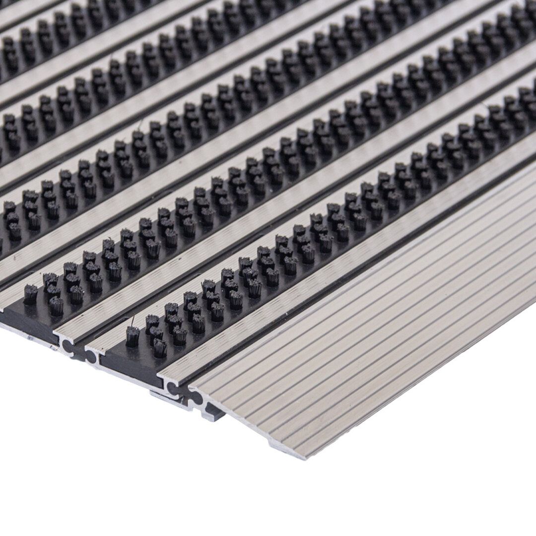 Stříbrná hliníková venkovní čisticí kartáčová vstupní rohož FLOMA Topline - 50 x 80 x 1,5