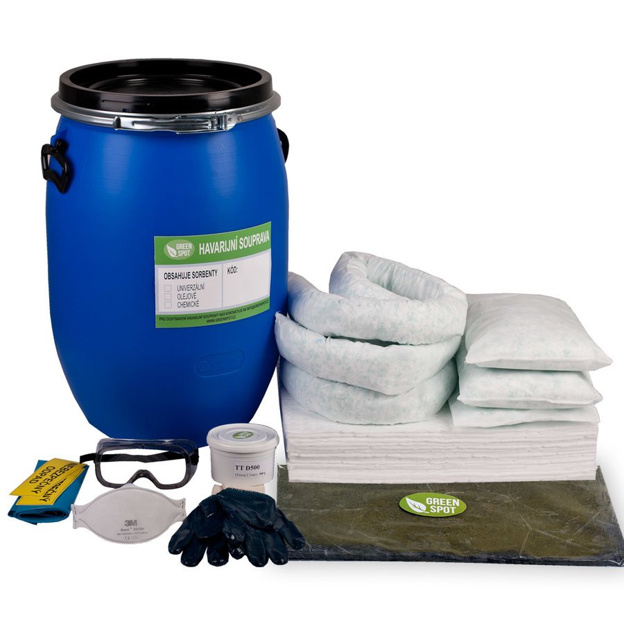 Hydrofobní sudová havarijní souprava OHSS-60/K je určena k rychlému zásahu při úniku ropných kapalin. Souprava obsahuje speciální olejové sorbenty, které absorbují pouze ropné látky a neabsorbují vodu. Díky tomu je ideální pro použití ve venkovním prostředí, stavebnictví, autodopravě, čerpacích stanicích a dalších místech, kde se pracuje s ropnými produkty. Plastový sud s UN certifikací lze použít i jako dočasnou nádobu pro sběr použitých sorbentů.