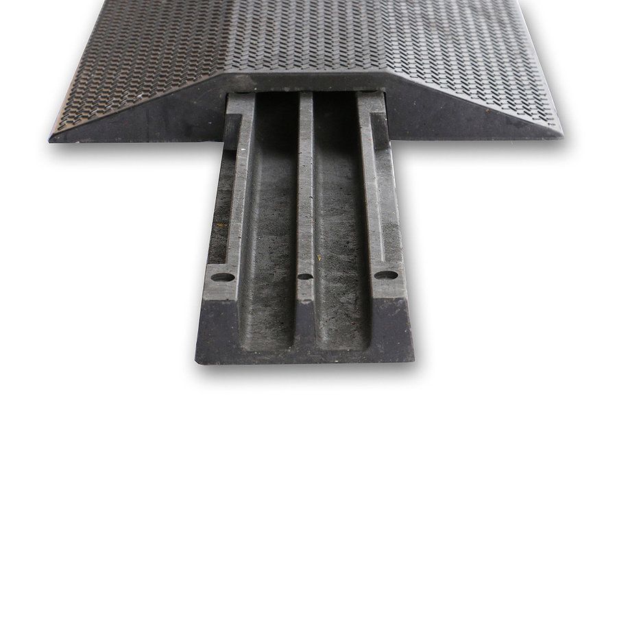 Tento model vyniká svou robustní konstrukcí s unikátní vložkou, která slouží k pevnému propojení jednotlivých dílů. Díky dvěma prostorným kanálům o rozměru až 40 x 35 mm pojme i silnější napájecí kabely nebo tlakové hadice. Most nabízí extrémní nosnost 7 tun, vysokou chemickou stálost a nesnadnou hořlavost. Bezpečnost provozu dále zvyšuje protiskluzový dezén a vysoká stabilita na podkladu. Pro maximální vizuální varování doporučujeme při instalaci střídat žluté a černé díly, čímž vytvoříte nepřehlédnutelný varovný pás, který výrazně snižuje riziko zakopnutí i v rušných provozech.