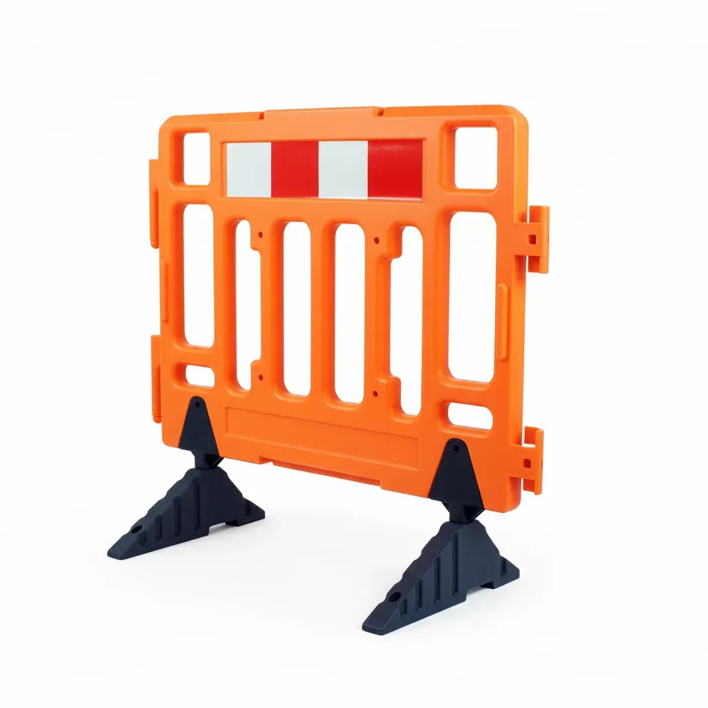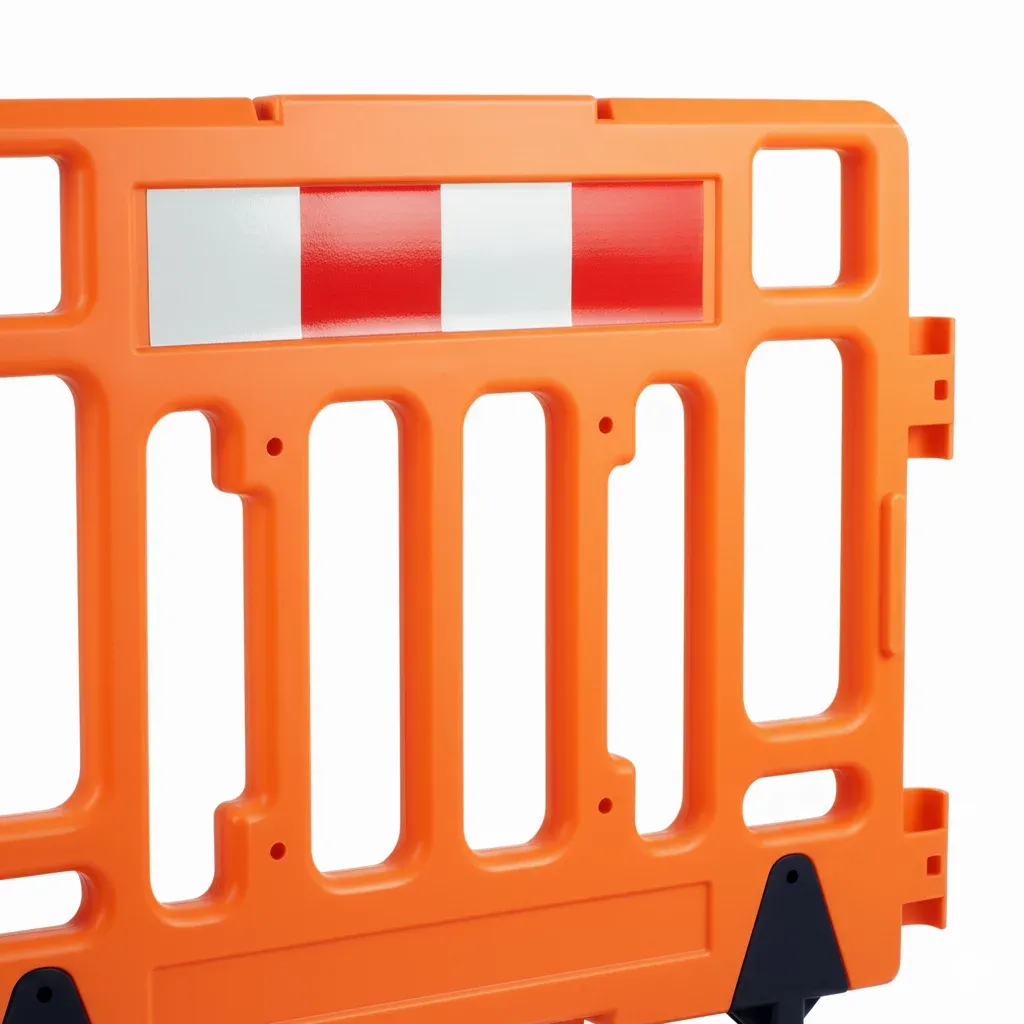 Oranžová plastová reflexní mobilní bariéra je určena k dočasnému vymezení prostor, řízení pohybu osob nebo vozidel a zvýšení bezpečnosti v rizikových oblastech. Díky své lehké konstrukci, výrazné barvě a reflexním prvkům je ideální pro použití na staveništích, při opravách silnic, v průmyslových provozech nebo při pořádání veřejných akcí.