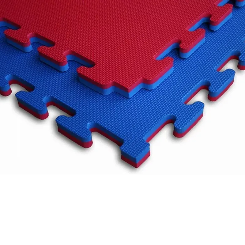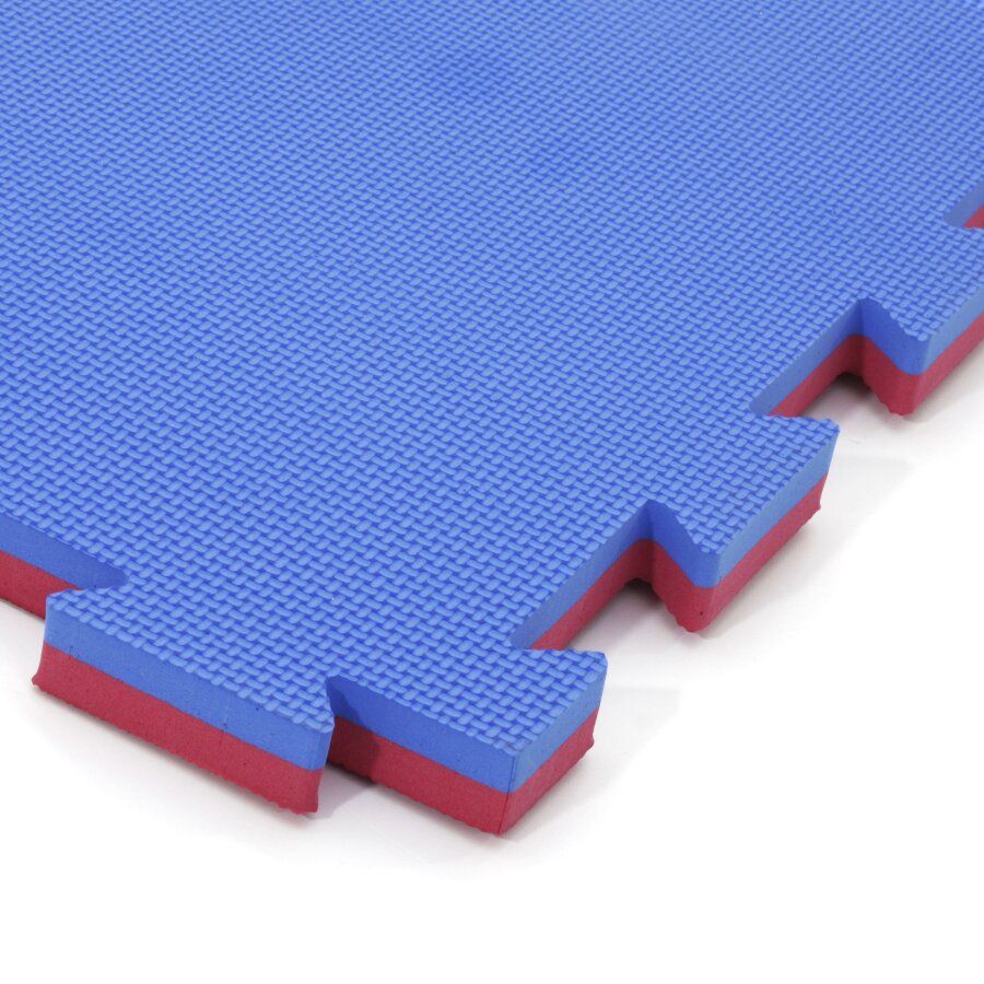 Červeno-modrá modulární pěnová podložka Tatami je oboustranná podložka tvaru puzzle, přičemž jednotlivé díly do sebe přesně zapadají. Výhodou Tatami podložky je protiskluzová pěna a měkký dotek. Lze ji využít pro všechny druhy sportů, kde se cvičí naboso.