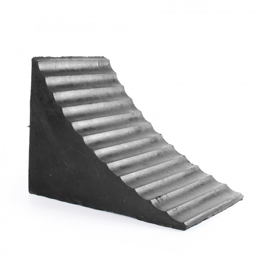 Černý gumový zakládací klín je vysoce účinným bezpečnostním prvkem pro zajištění vozidel proti samovolnému pohybu. Díky ideálnímu sklonu a provedení z pryže klín dosahuje zvýšeného smykového tření s povrchem, což zajišťuje maximální stabilitu i na prudších svazích.