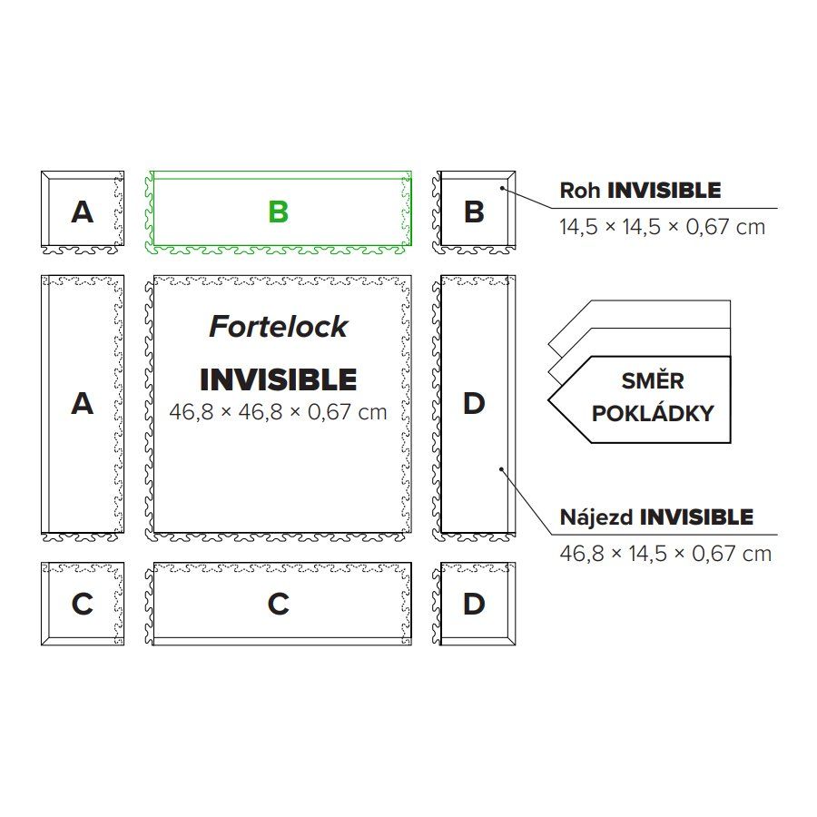 PVC podlahy Fortelock Invisible se vyznačují především těmito vlastnostmi - vysoká odolnost materiálu vůči zátěži, protiskluzný povrch, perfektní zámkový systém, který pevně drží dlaždice při sobě, chemická odolnost, speciálně navržen dezén, který usnadňuje čištění a v neposlední řade systém odvodných kanálků Air Flow, který brání zadržování vody pod podlahou a umožňuje ji větrat. To je jen pár výhod, na které se můžete spolehnout po instalaci PVC dlažby Fortelock Invisible.